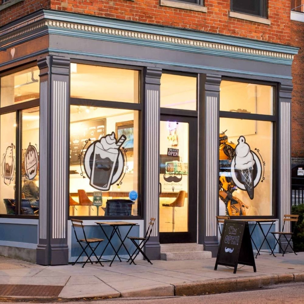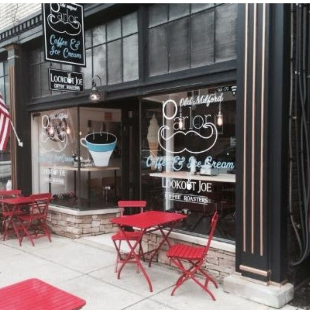 Charming Milford parlor serving creamy softβserve, artisan espresso, and scratchβmade edible cookie dough in historic setting.